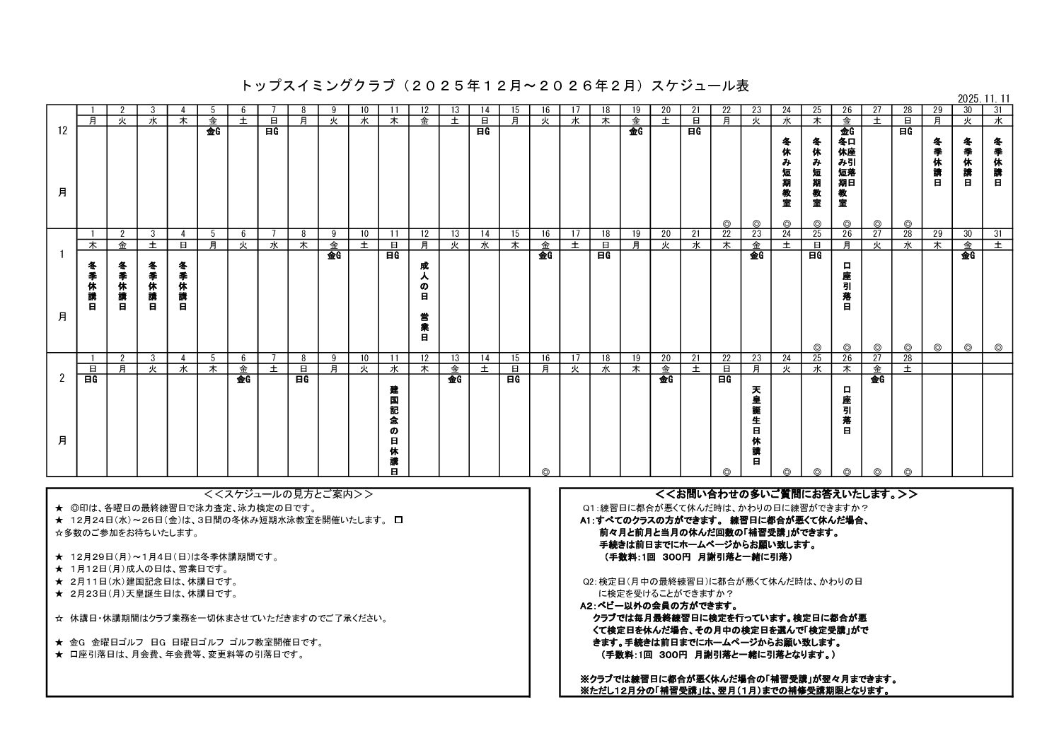 3ヶ月のスケジュール表のご案内