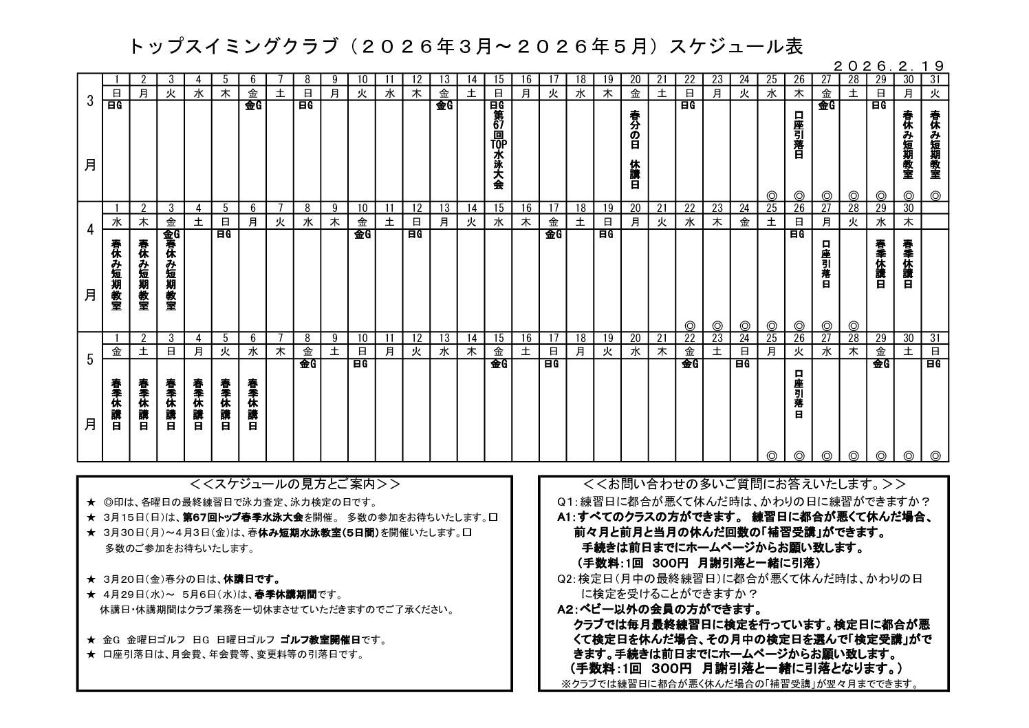 3ヵ月のスケジュール表のご案内